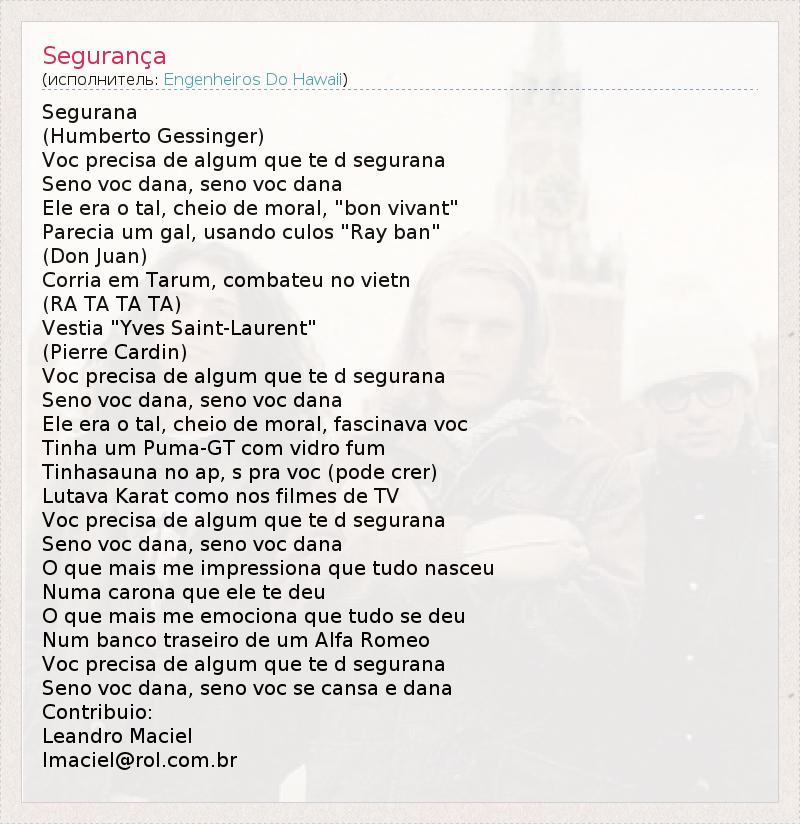 А как ты думаешь, о чем песня "Segurança" ?