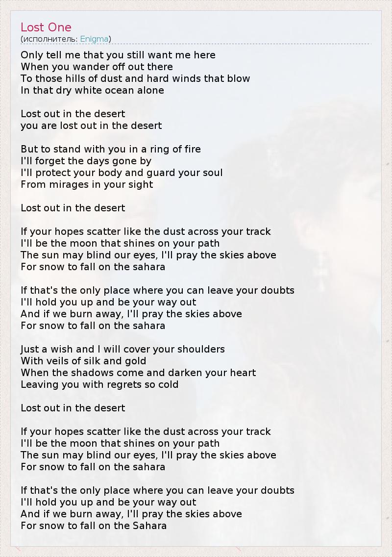 Ты потерявшийся в пустыне...