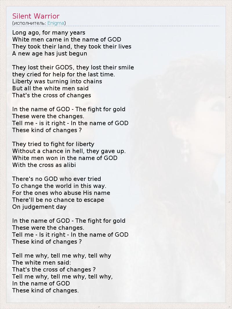 А как ты думаешь, о чем песня "Silent Warrior" ?