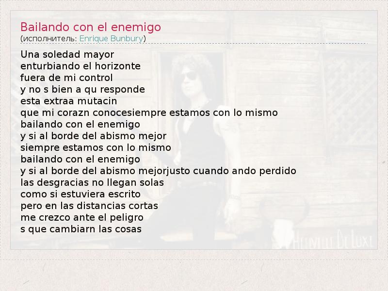 А как ты думаешь, о чем песня "Bailando con el enemigo" ?