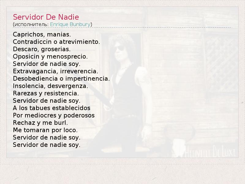 А как ты думаешь, о чем песня "Servidor De Nadie" ?