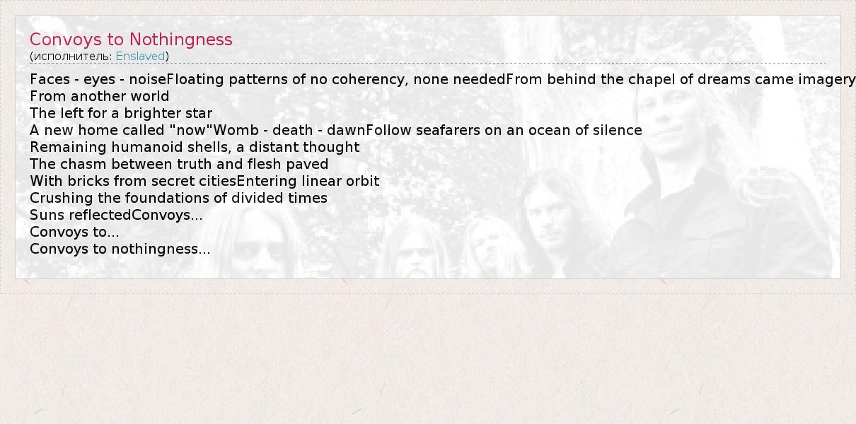 ГлавнаяИсполнителиEnslavedConvoys to Nothingness