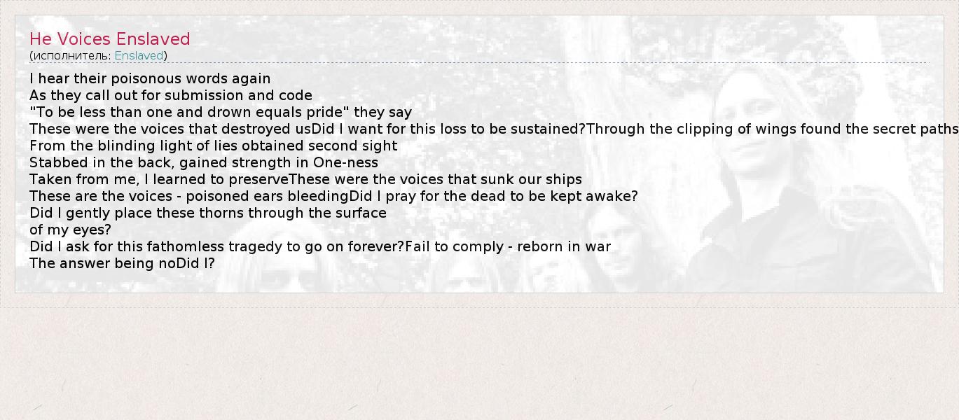 А как ты думаешь, о чем песня "He Voices Enslaved" ?