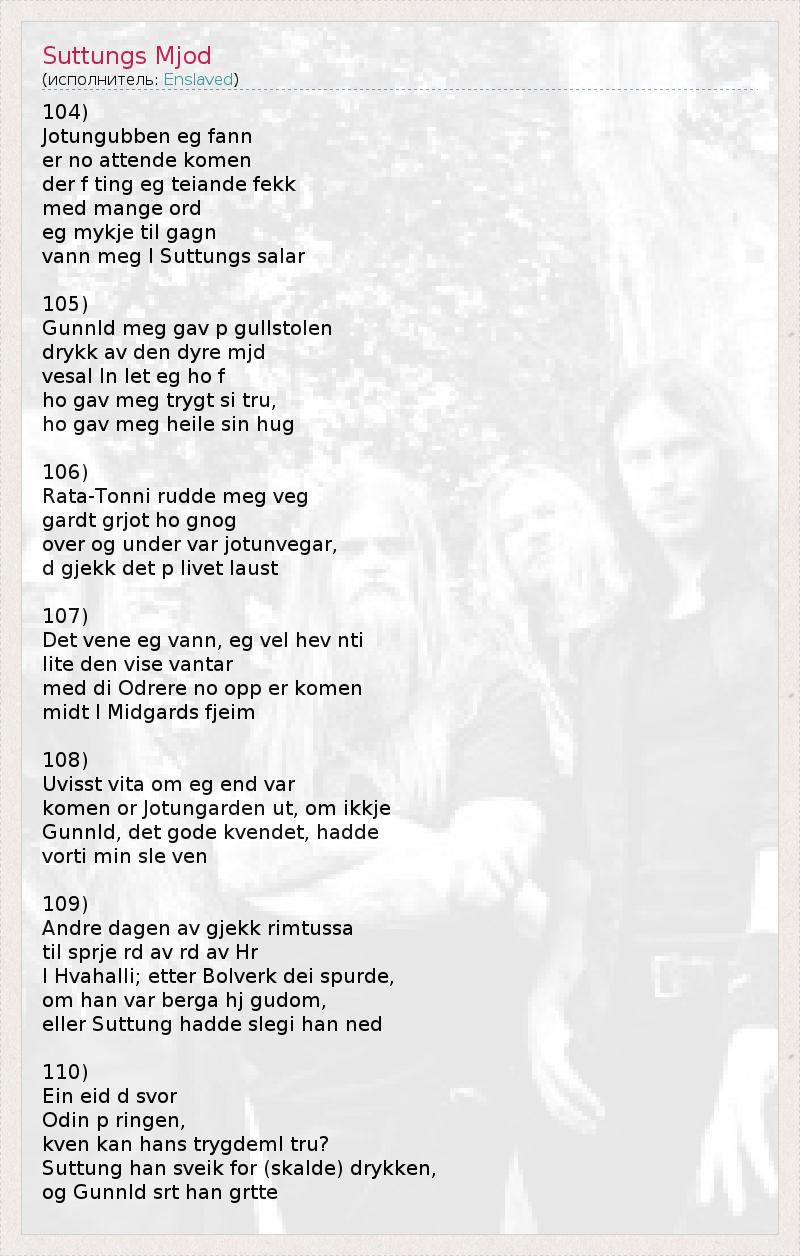 А как ты думаешь, о чем песня "Suttungs Mjod" ?