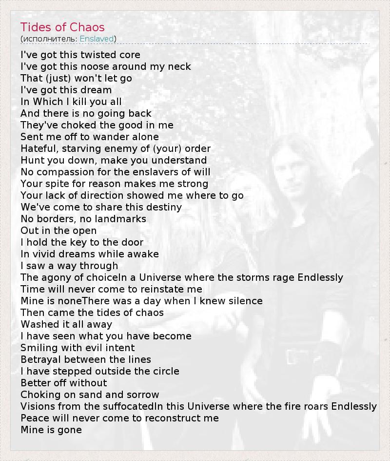 А как ты думаешь, о чем песня "Tides of Chaos" ?