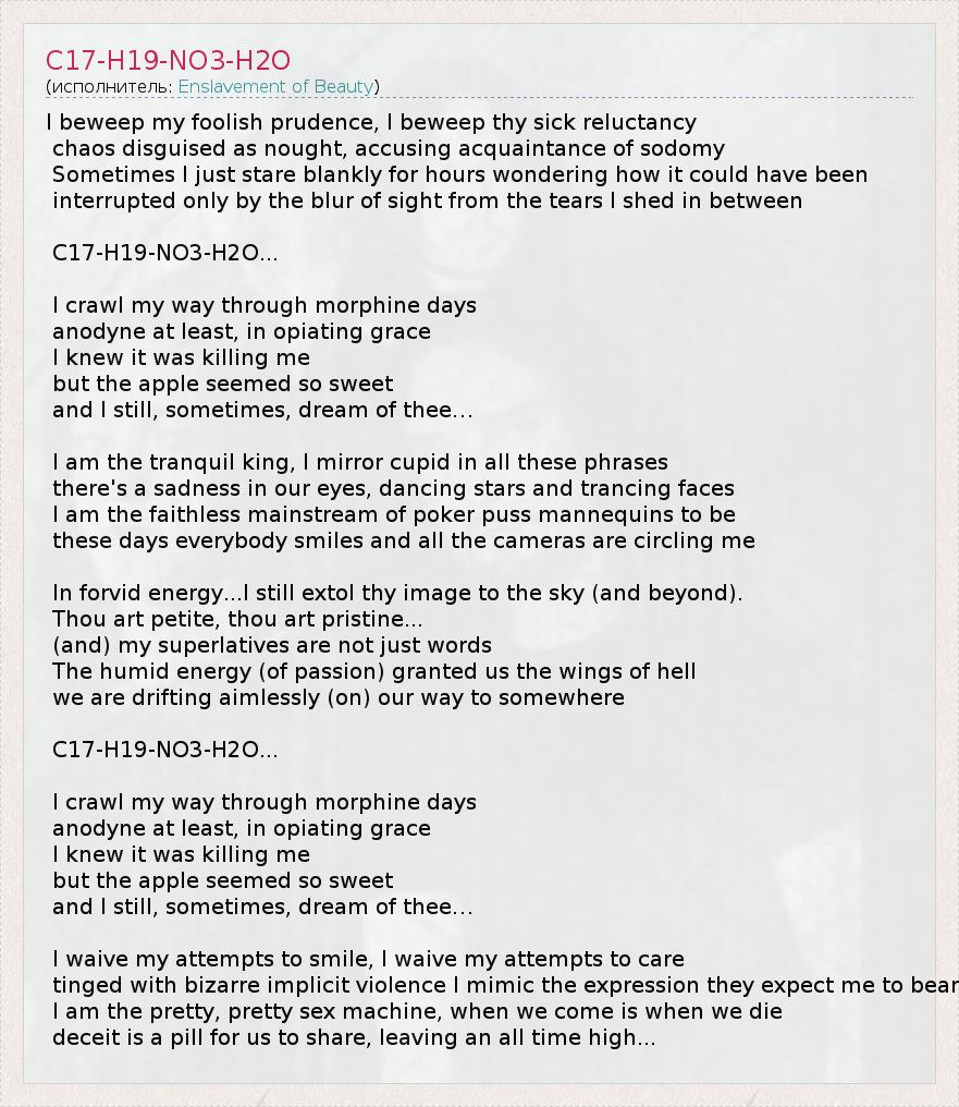 А как ты думаешь, о чем песня "C17-H19-NO3-H2O" ?