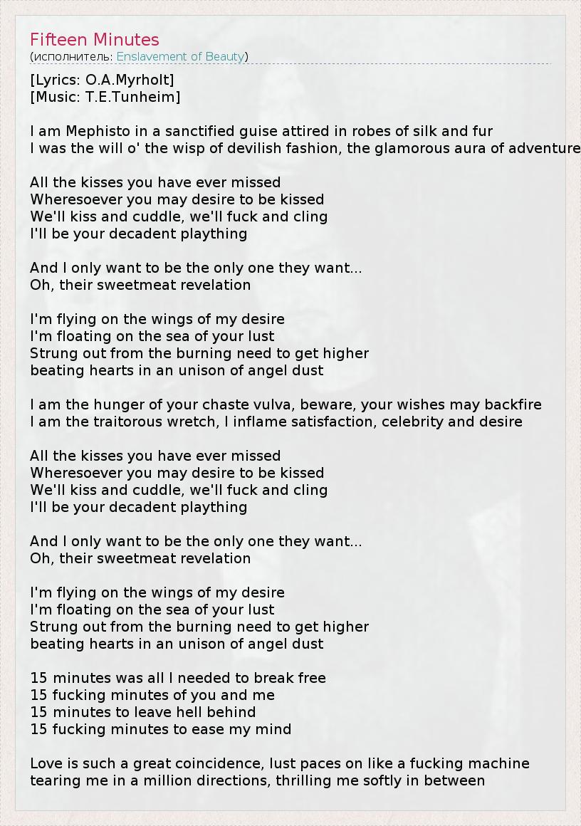 15 fucking minutes of you and me
