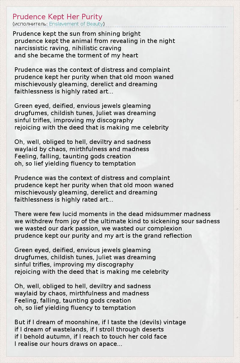 А как ты думаешь, о чем песня "Prudence Kept Her Purity" ?
