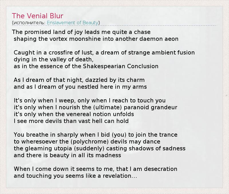 А как ты думаешь, о чем песня "The Venial Blur" ?