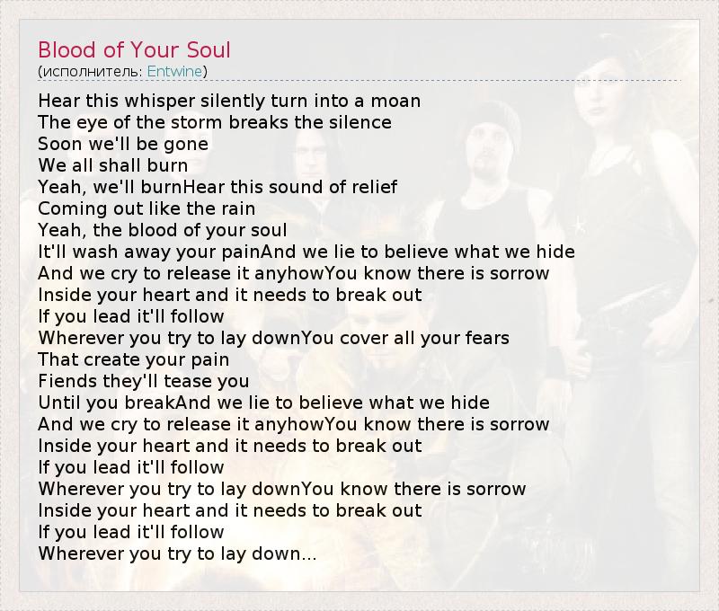 А как ты думаешь, о чем песня "Blood of Your Soul" ?