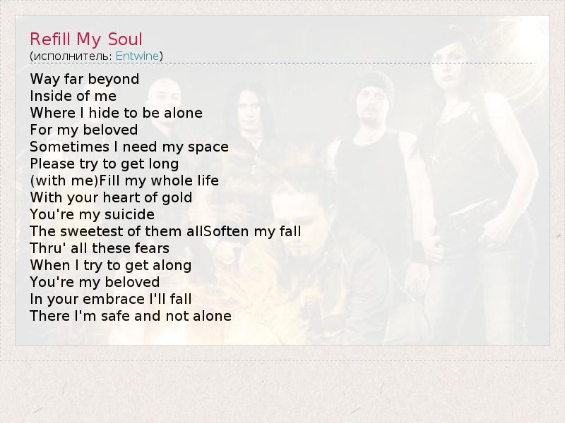 А как ты думаешь, о чем песня "Refill My Soul" ?