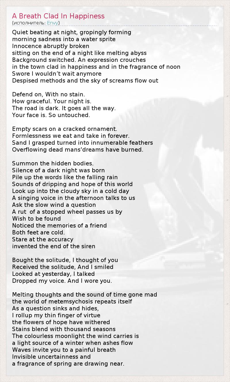 А как ты думаешь, о чем песня "A Breath Clad In Happiness" ?