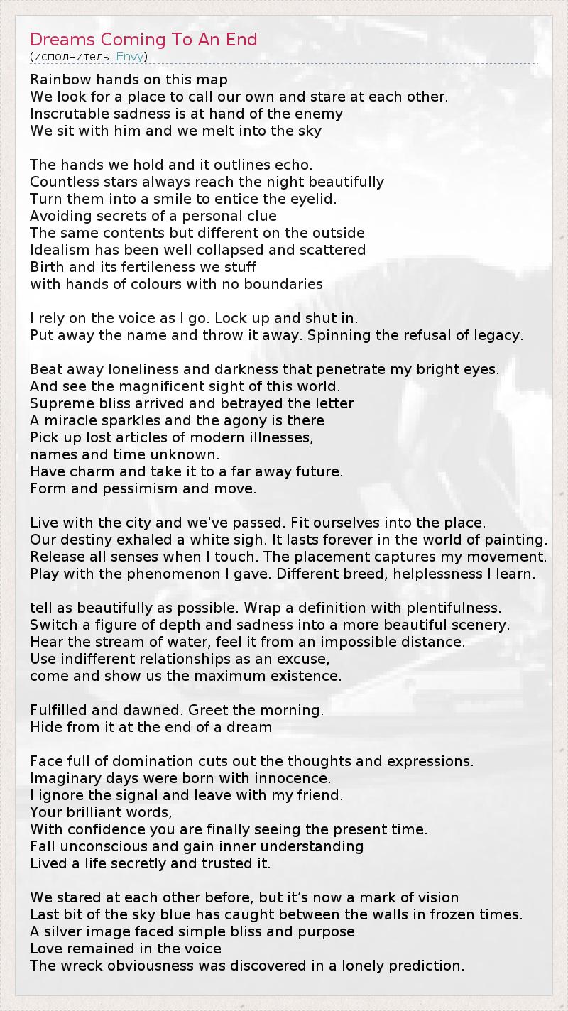 А как ты думаешь, о чем песня "Dreams Coming To An End" ?