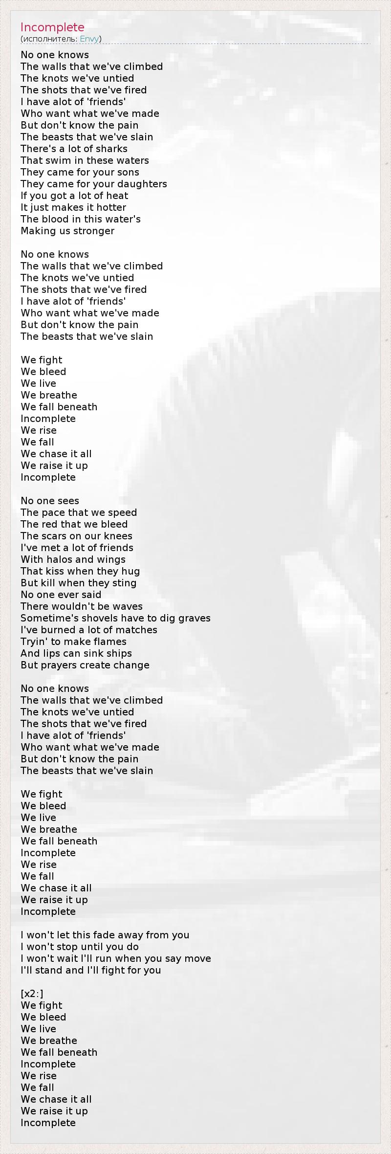 А как ты думаешь, о чем песня "Incomplete" ?