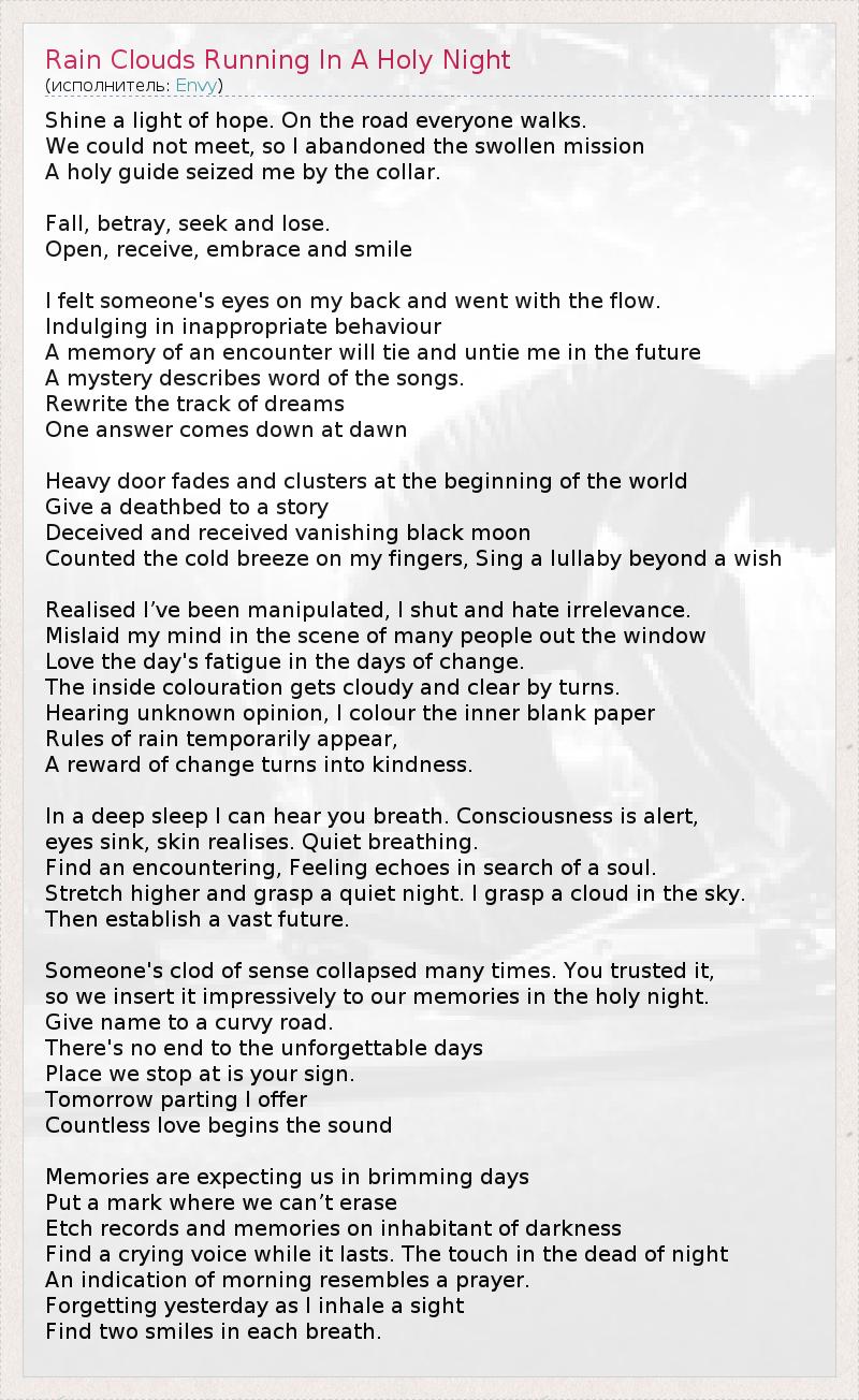 А как ты думаешь, о чем песня "Rain Clouds Running In A Holy Night" ?