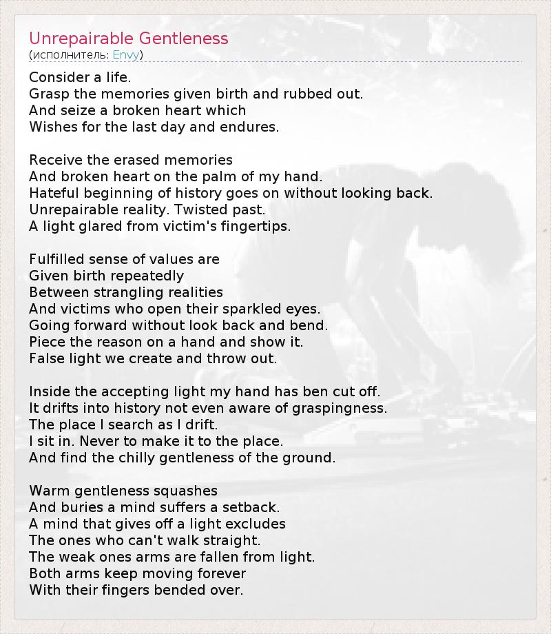 ГлавнаяИсполнителиEnvyUnrepairable Gentleness