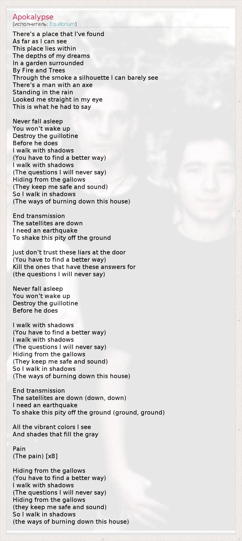 А как ты думаешь, о чем песня "Apokalypse" ?