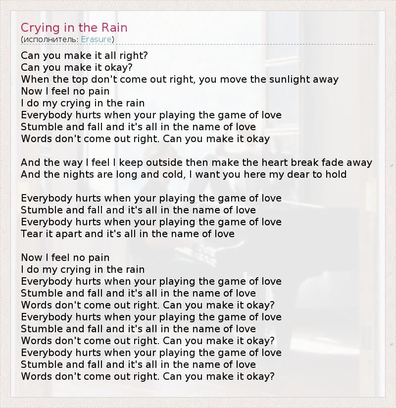 А как ты думаешь, о чем песня "Crying in the Rain" ?
