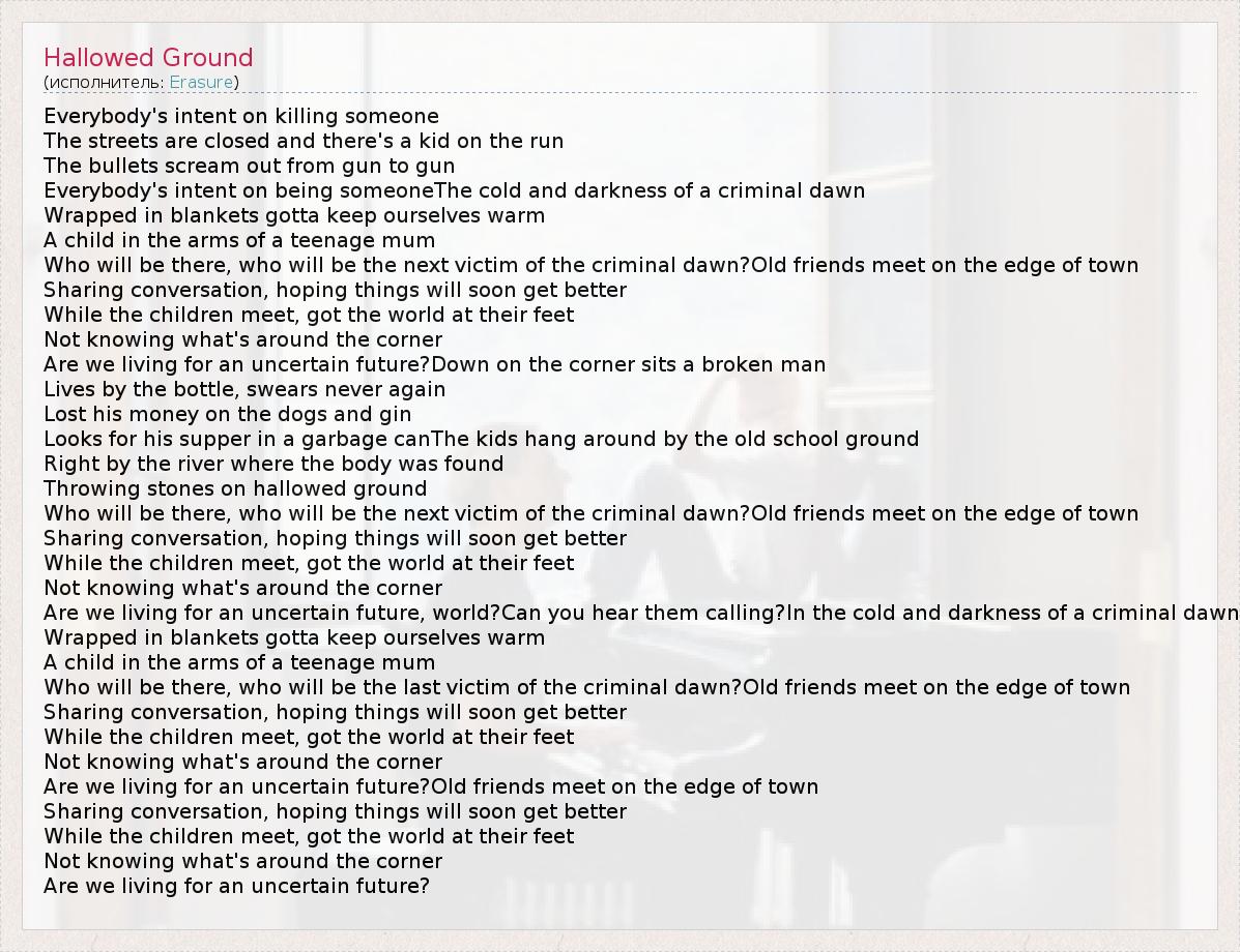 А как ты думаешь, о чем песня "Hallowed Ground" ?