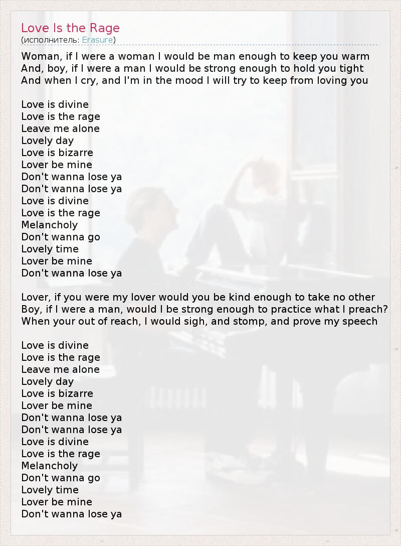 А как ты думаешь, о чем песня "Love Is the Rage" ?