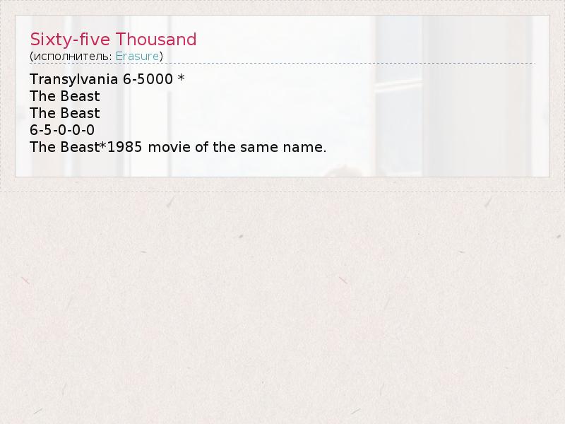 А как ты думаешь, о чем песня "Sixty-five Thousand" ?