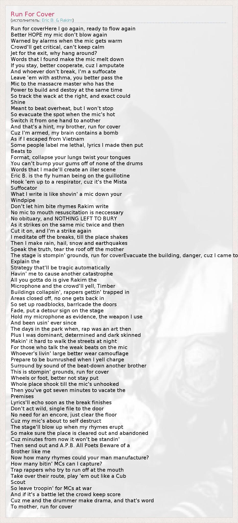 А как ты думаешь, о чем песня "Run For Cover" ?