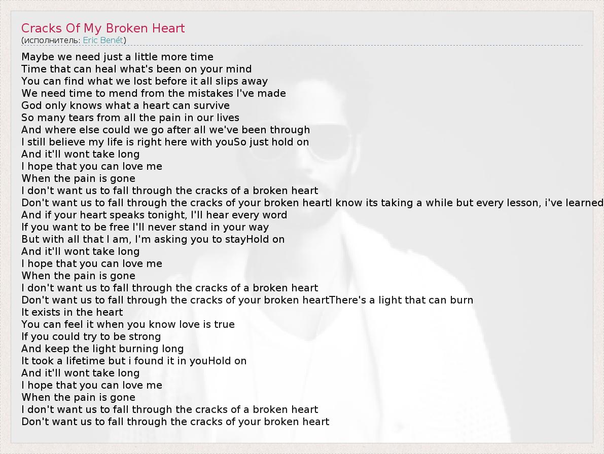 А как ты думаешь, о чем песня "Cracks Of My Broken Heart" ?