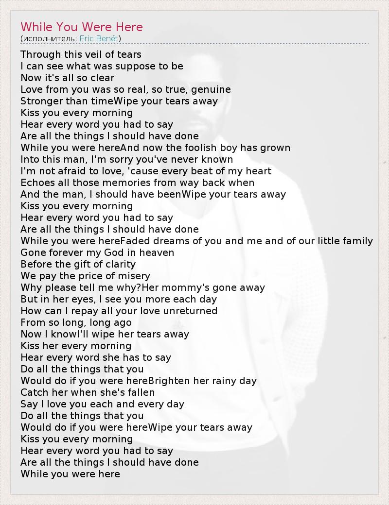 А как ты думаешь, о чем песня "While You Were Here" ?