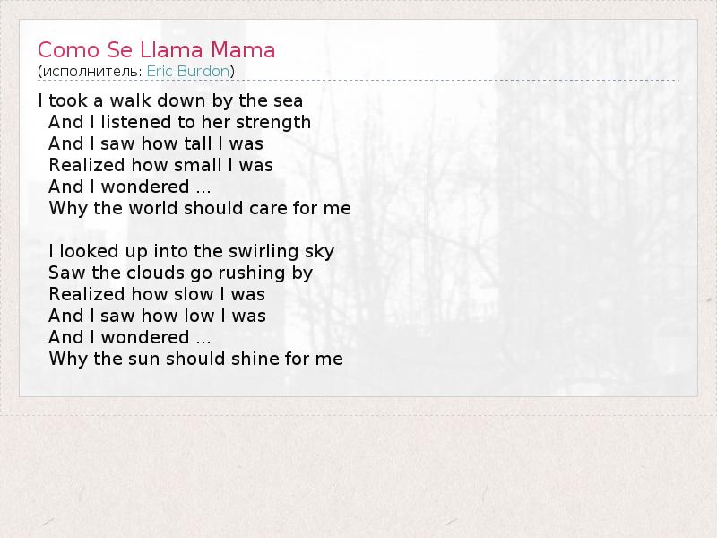 А как ты думаешь, о чем песня "Como Se Llama Mama" ?