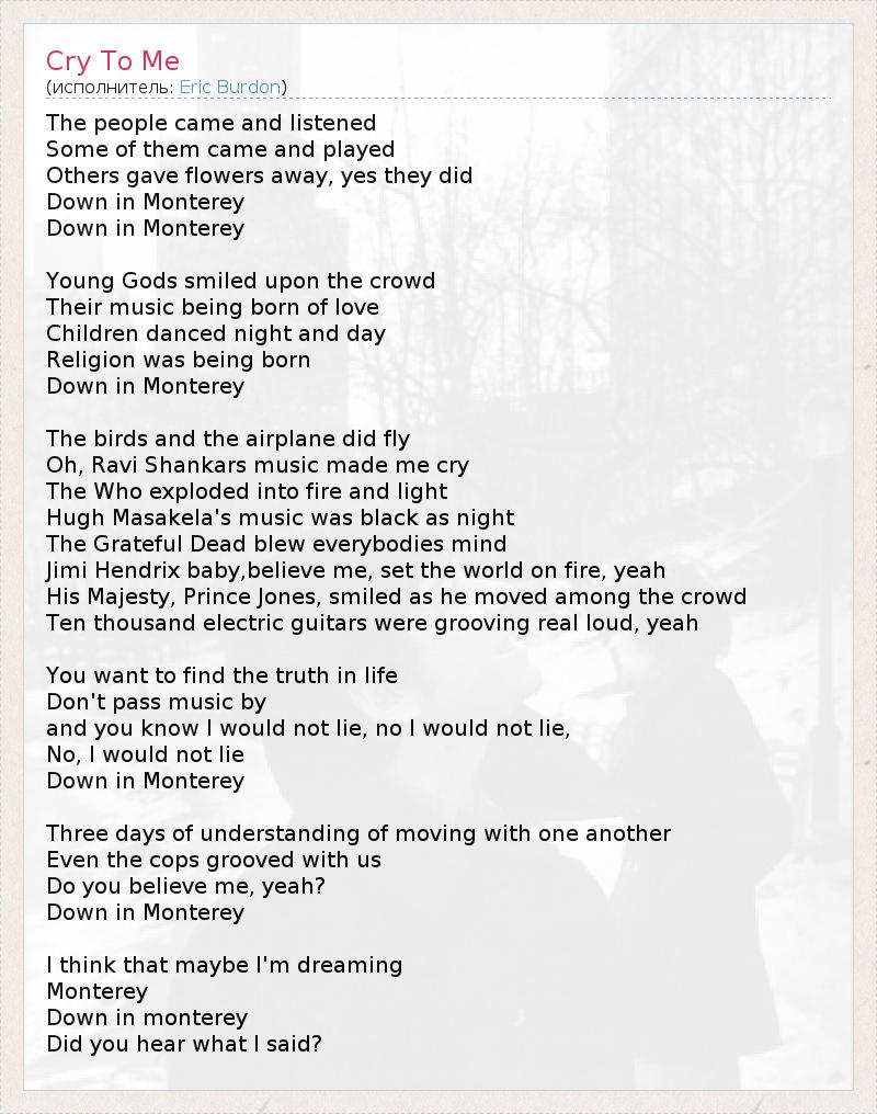 А как ты думаешь, о чем песня "Cry To Me" ?