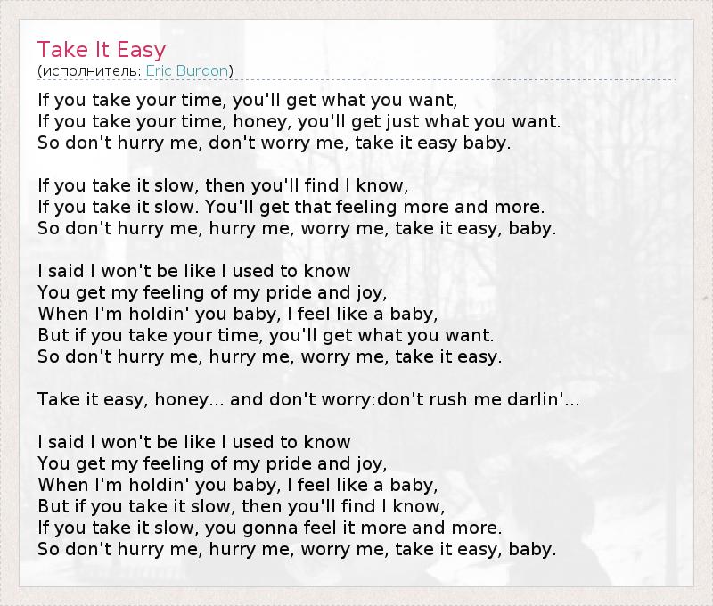 А как ты думаешь, о чем песня "Take It Easy" ?