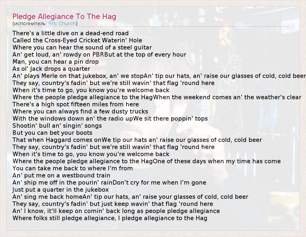 ГлавнаяИсполнителиEric ChurchPledge Allegiance To The Hag