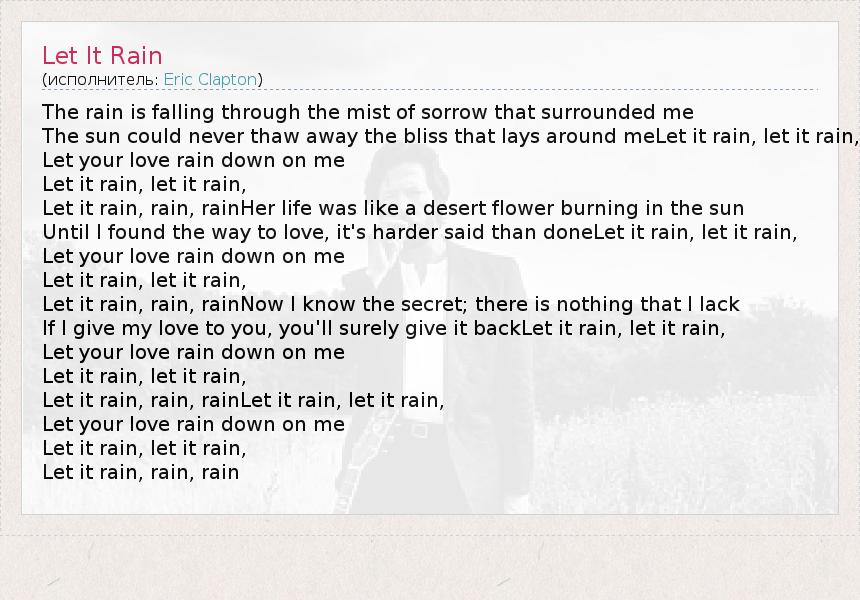 А как ты думаешь, о чем песня "Let It Rain" ?