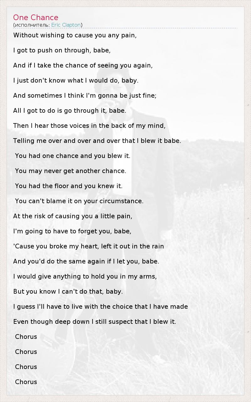 А как ты думаешь, о чем песня "One Chance" ?