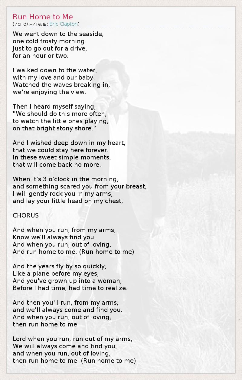 А как ты думаешь, о чем песня "Run Home to Me" ?