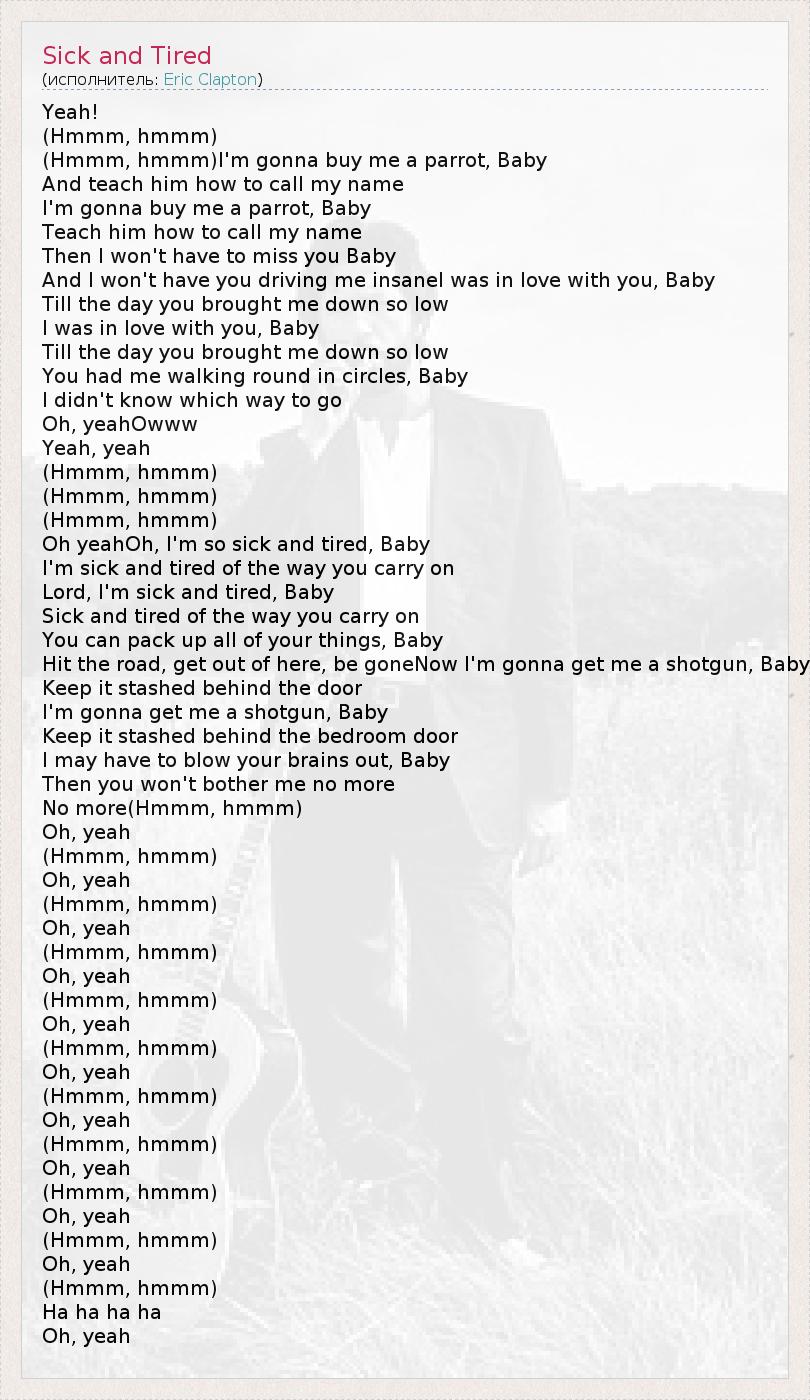 А как ты думаешь, о чем песня "Sick and Tired" ?