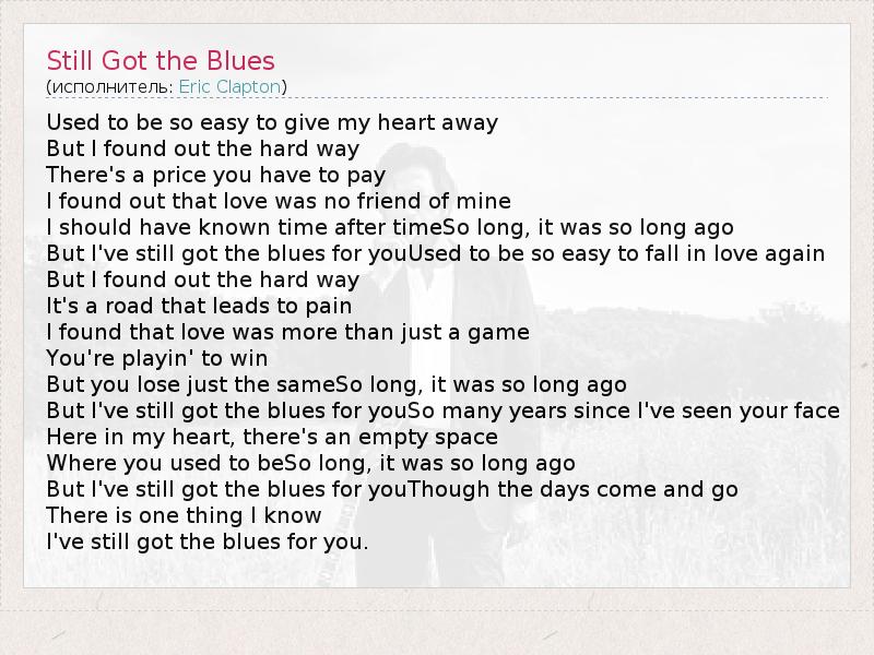 А как ты думаешь, о чем песня "Still Got the Blues" ?
