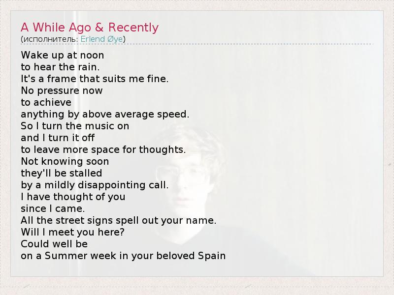 А как ты думаешь, о чем песня "A While Ago & Recently" ?