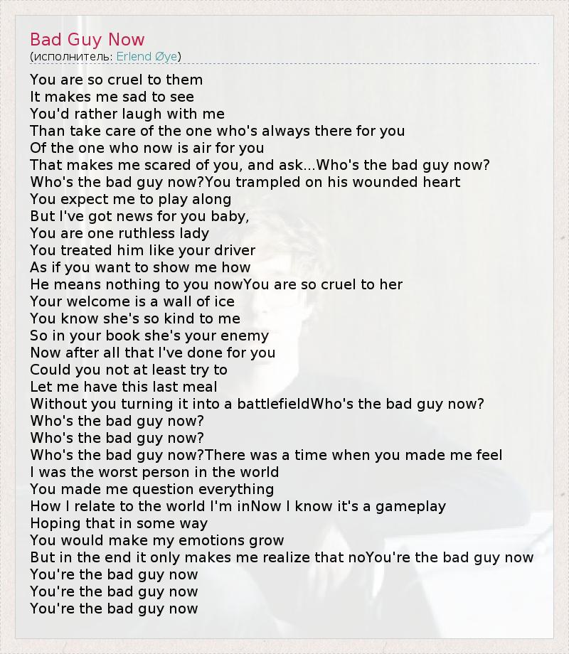 А как ты думаешь, о чем песня "Bad Guy Now" ?