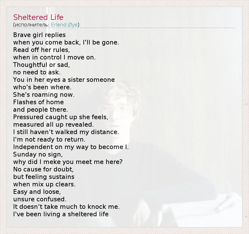 А как ты думаешь, о чем песня "Sheltered Life" ?