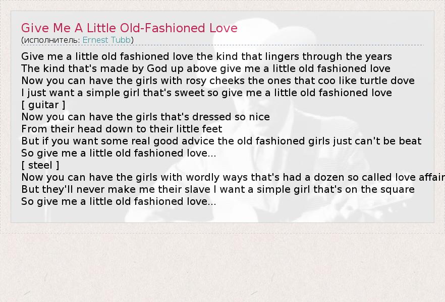 А как ты думаешь, о чем песня "Give Me A Little Old-Fashioned Love" ?