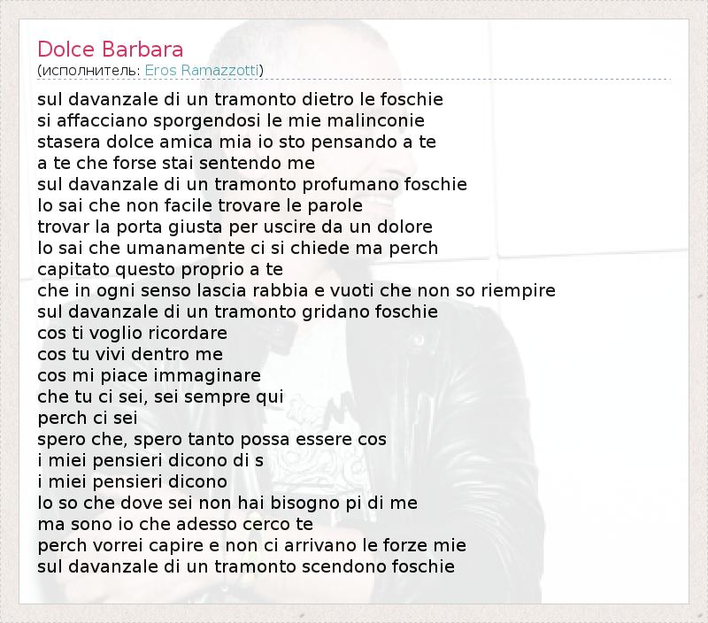 А как ты думаешь, о чем песня "Dolce Barbara" ?