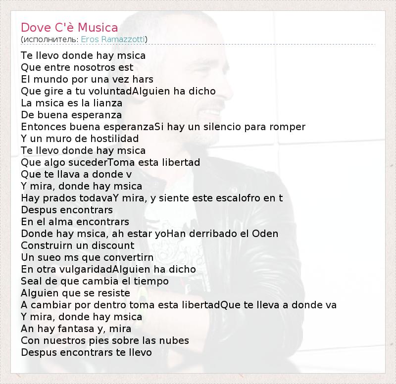 А как ты думаешь, о чем песня "Dove C'è Musica" ?