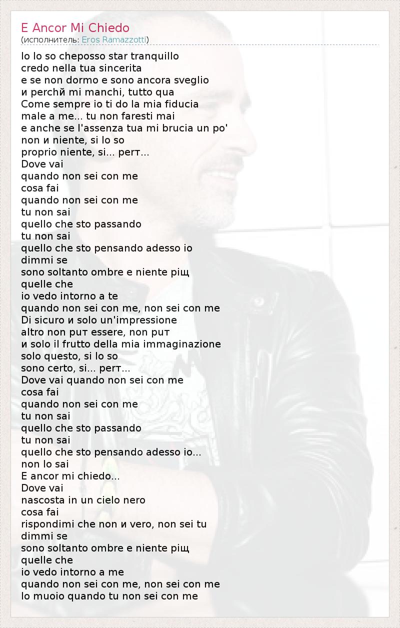 А как ты думаешь, о чем песня "E Ancor Mi Chiedo" ?