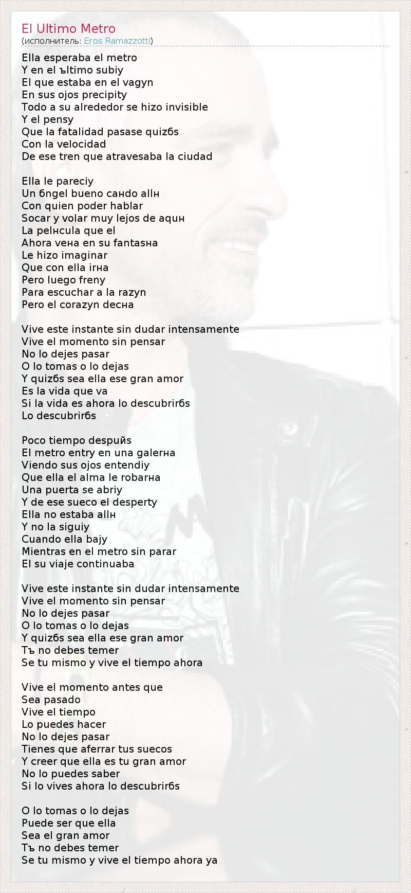 А как ты думаешь, о чем песня "El Ultimo Metro" ?