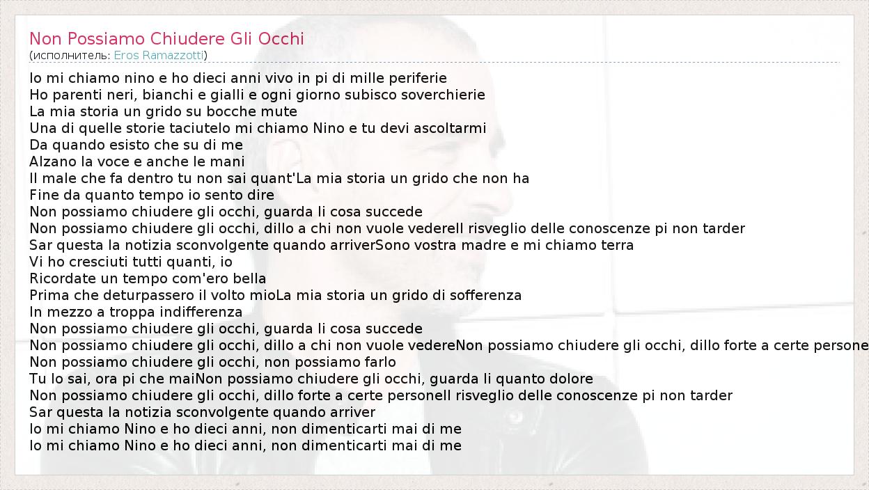 ГлавнаяИсполнителиEros RamazzottiNon Possiamo Chiudere Gli Occhi