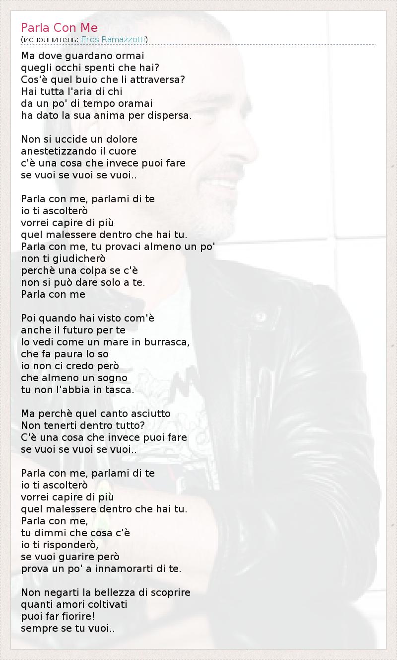А как ты думаешь, о чем песня "Parla Con Me" ?