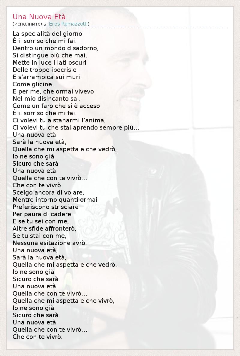 Это интересно:Если бы родители маленького Эроса знали, что в скором будущем их сын станет всемирно известным, то наверняка не стали бы его наказывать за поздние возвращения домой и неубранную комнату.Eros Ramazzotti родился в 1963 году в Риме. Учеба нелегко давалась юному музыканту, и, провалив вступительные экзамены в местную консерваторию, он переезжает в Милан, чтобы попробовать себя в большом мире музыки.... продолжение