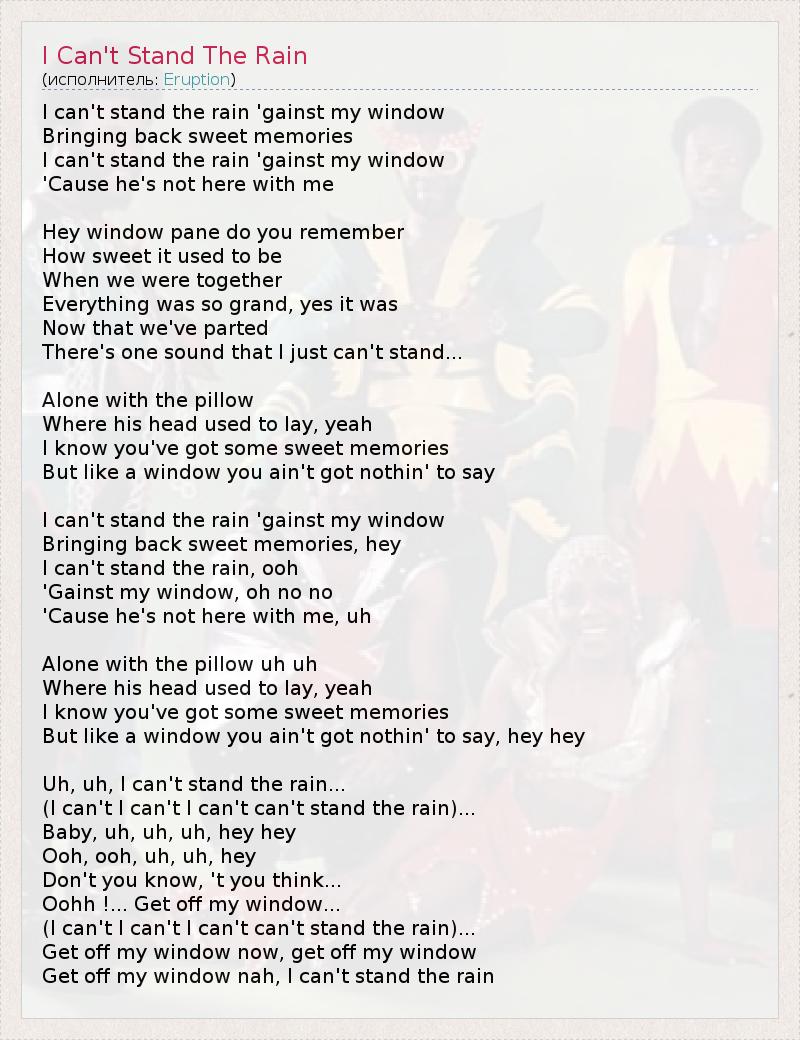 А как ты думаешь, о чем песня "I Can't Stand The Rain" ?