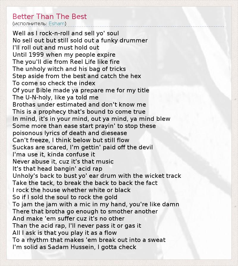 А как ты думаешь, о чем песня "Better Than The Best" ?